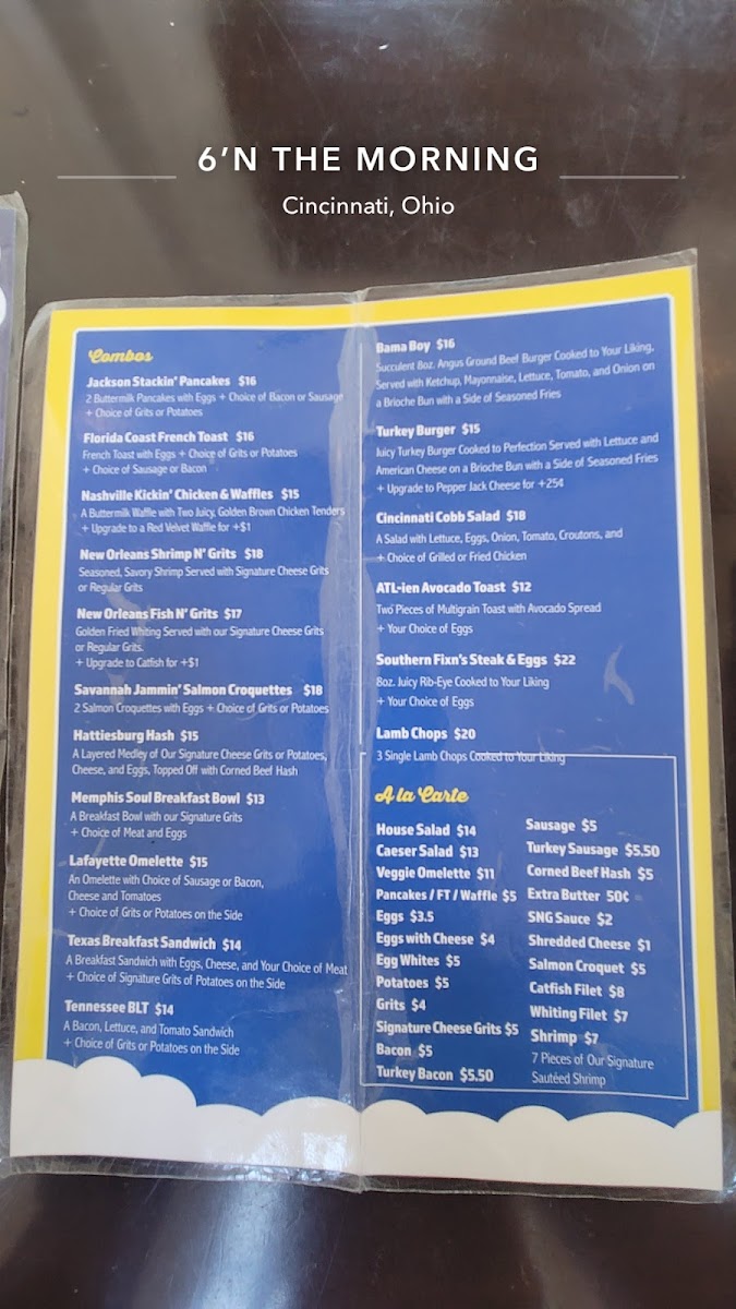 Welcome to 6 'N The Mornin', a vibrant eatery located at 1535 Madison Rd, Cincinnati, OH. This brunch haven offers a delightful menu featuring an array of starters like Fried Brocc and Fried Cauli, perfect for sharing. Patrons rave about their flavorful Shrimp and Grits and the enticing Florida Coast French Toast, making it an ideal spot for linner or weekend brunch.
